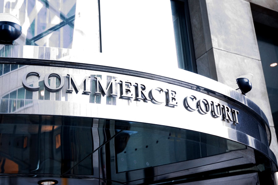 Scope: Soheil Mosun Limited was contracted to fabricate and install the wayfinding, directories and building identification for the CIBC Commerce Court Complex in Toronto's financial district.