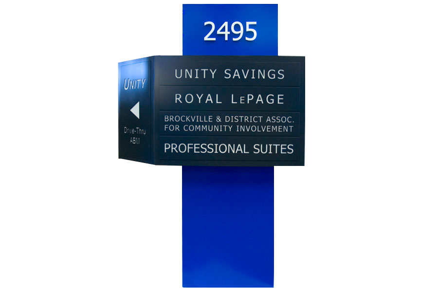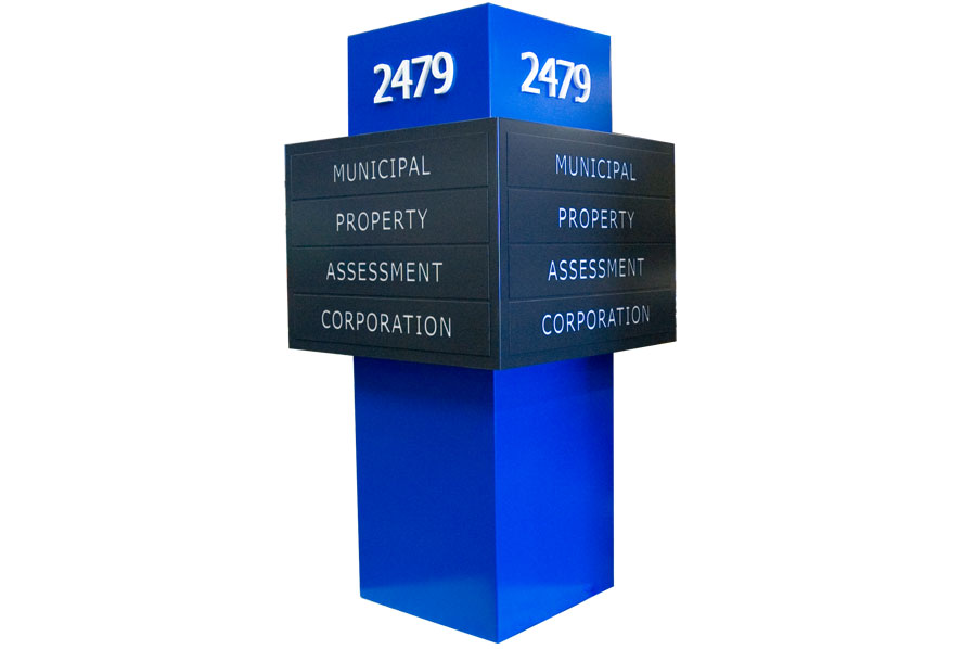 Scope: Soheil Mosun Limited was contracted to design, fabricate and deliver (2) internally illuminated exterior pylon signs.