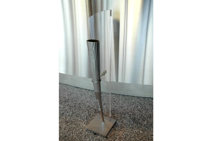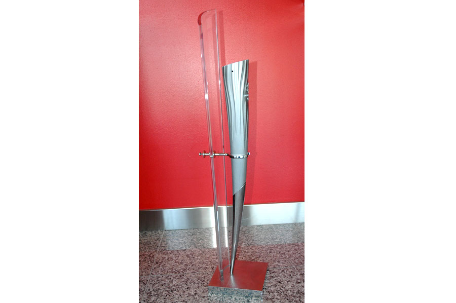 Scope: Soheil Mosun Limited created these ultra high quality Olympic Torch Stands for the owner of OC Tanner stores. The Torch Stands present these objects in an elegant setting with no impediment to viewing due to the nature of the design and materials used and can be wall mounted in addition to freestanding.