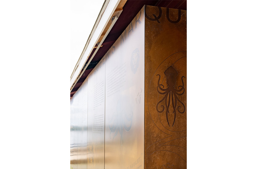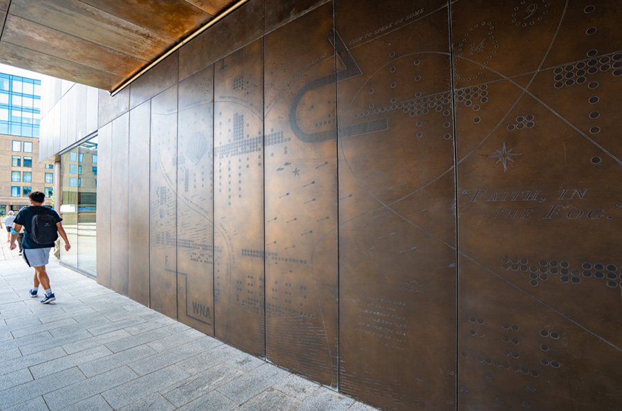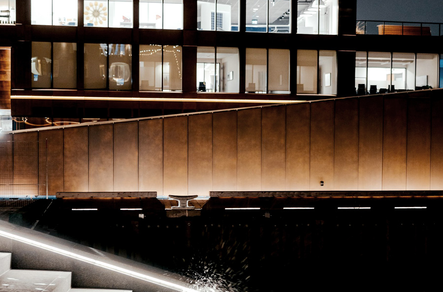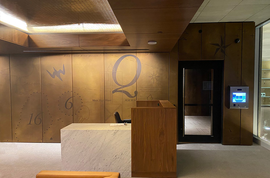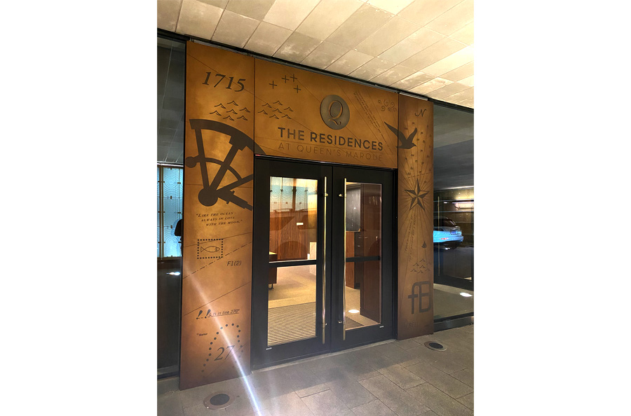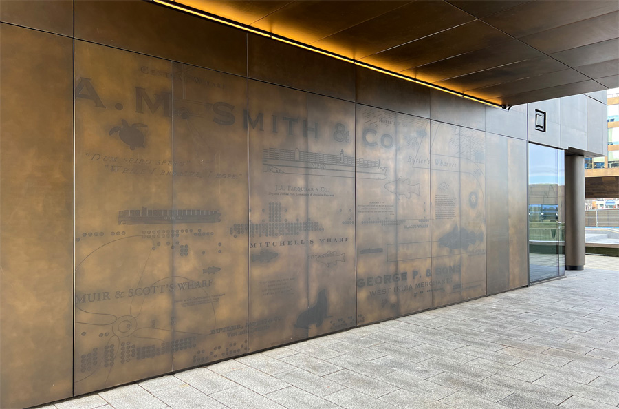 Scope: Soheil Mosun Limited was contracted by the Armour Group and Queen’s Marque Development to fabricate, etch, patina and supply over a thousand (1,000) panels for interior decorative walls and exterior curtain wall use at the newly developed Queen’s Marque in Halifax, Nova Scotia.