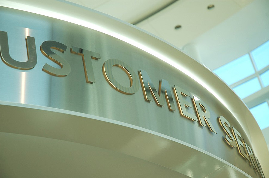 Scope: Soheil Mosun Limited was contracted to complete the design, engineering, fabrication and installation of a custom illuminated customer service desk.