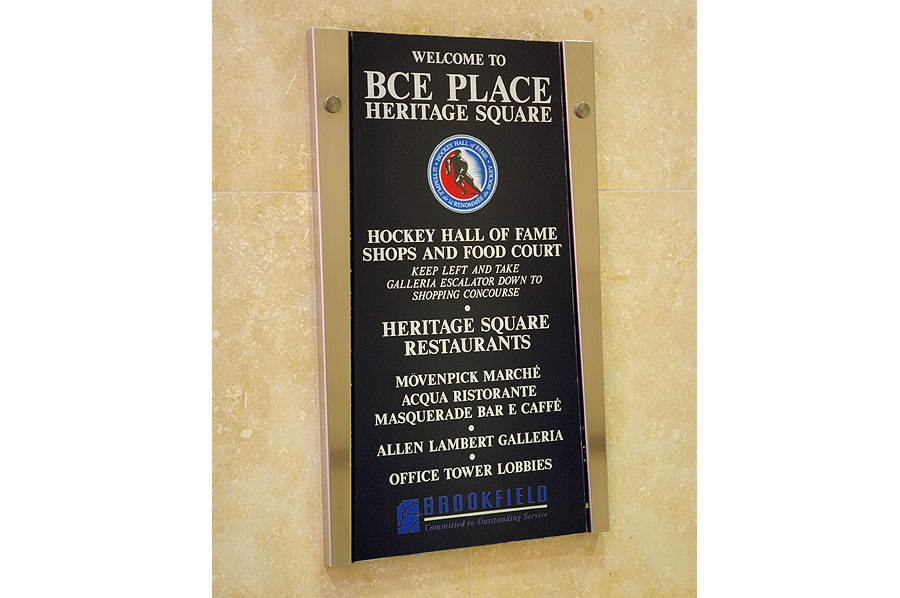 Scope: Soheil Mosun Limited was commissioned to manufacture and install wayfinding signs for the Hockey Hall of Fame and Heritage Square locations.