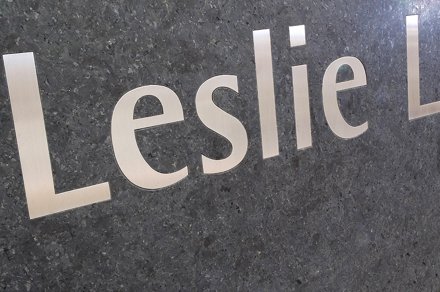 Scope: Soheil Mosun Limited was commissioned to manufacture and assemble (1) custom granite ground sign with waterjet cut, brushed stainless steel incised lettering and precision carved graphics.