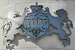 MTV Signage and Light Fixtures - Waterjet cut and 3D machined 1/4" muntz bronze MTV crest, 1" waterjet cut muntz lettering and lighting with statuary patina finish